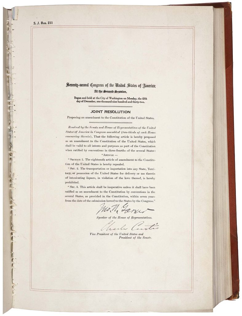 禁酒体制転換へ動く議会 ── 第21条発議、全米の酒法揺らぐ