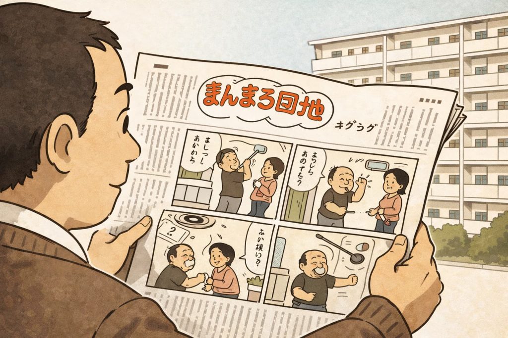 「赤旗」に庶民の風、4コマ『まんまる団地』連載開始 ── オダシゲ氏が描く団地群像劇