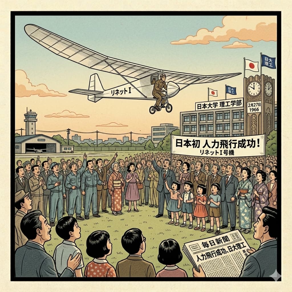 日本大学の「リネットI」が日本初の人力飛行に成功