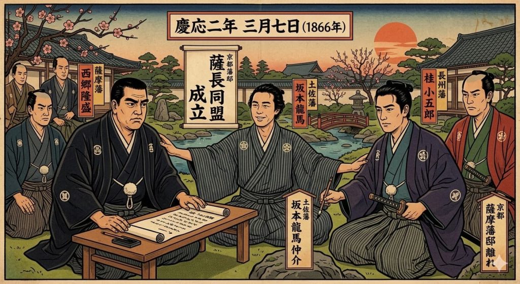 坂本龍馬の仲介で薩摩・長州の両雄藩が軍事同盟を締結