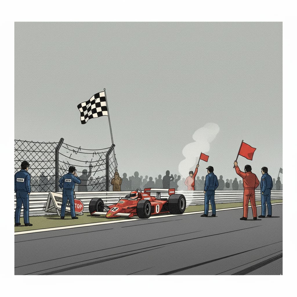 【静岡・富士 10月23日】 本日、富士スピードウェイで開催された1977年F1世界選手権最終戦・日本グランプリにて、レース中の事故により観客1名と警備員1名が死亡する惨... -