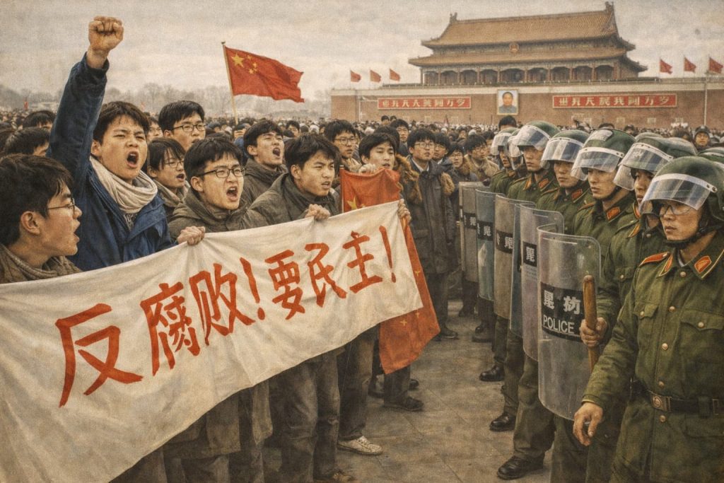 北京中心部で学生デモ 天安門広場に緊張走る