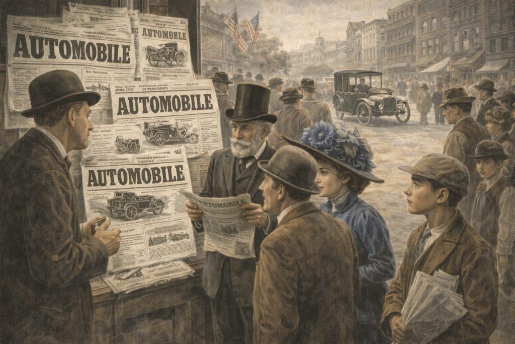 【ニューヨーク 1月3日】 本日付のニューヨーク・タイムズ紙面に掲載された広告において、英語の新語 “automobile” が使用されたことが確認された。人力や馬力に頼らな...