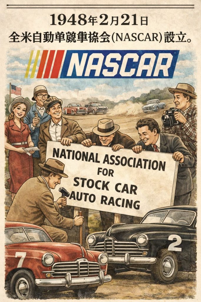 【デイトナビーチ 2月21日】 本日、フロリダ州デイトナビーチにおいて、全米自動車競争協会(NASCAR)が正式に設立された。発起人である実業家のビル・フランス・シニア... -