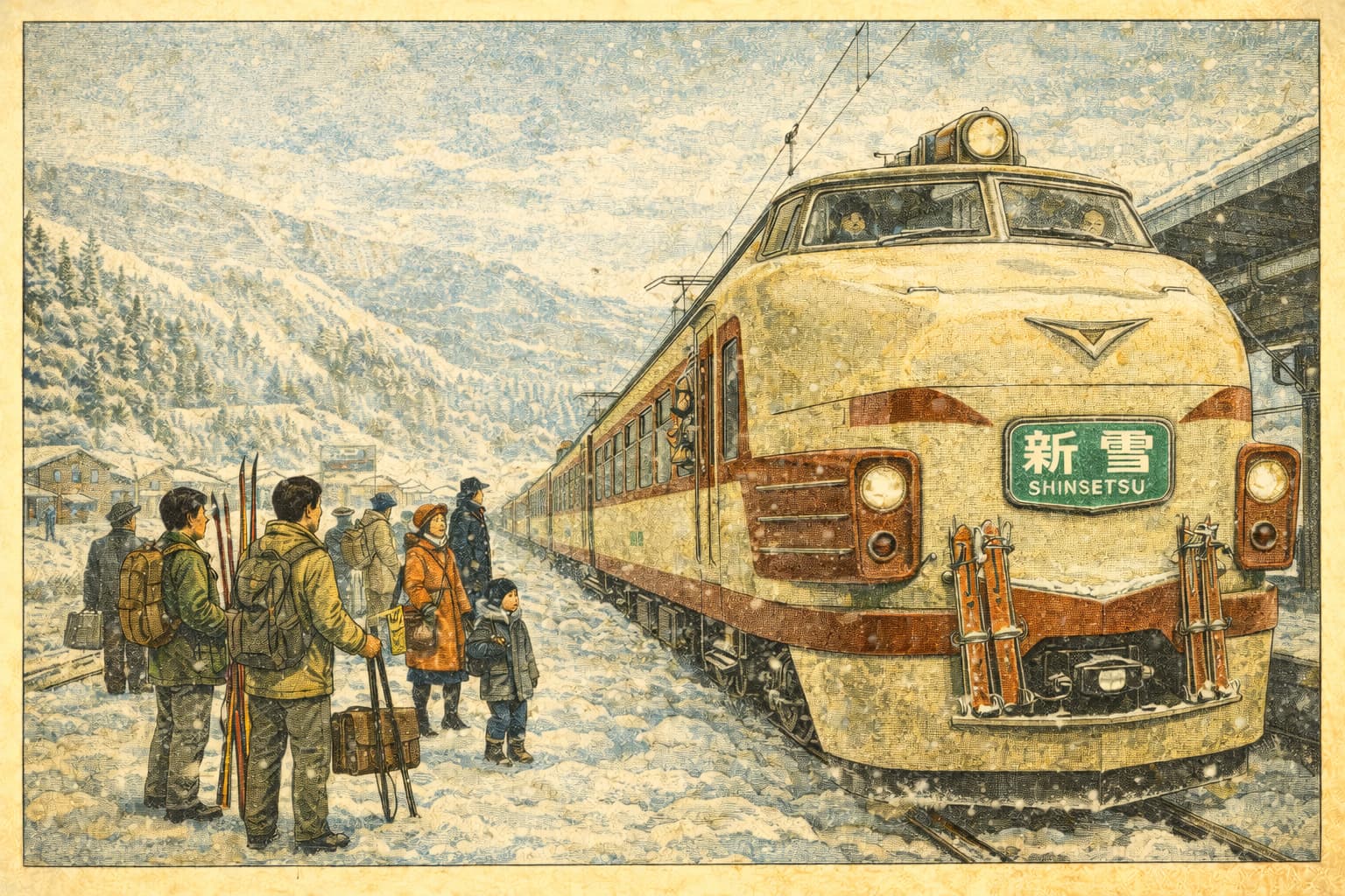 国鉄は本日、東京・上野駅と新潟県の石打駅を結ぶ臨時特急列車「新雪」の運転を開始した。首都圏と上越地方のスキー場を直結する列車として設定されたもので、冬季のレジャー需要の高まりを背景に、多くのスキー客の利用が見込まれている。