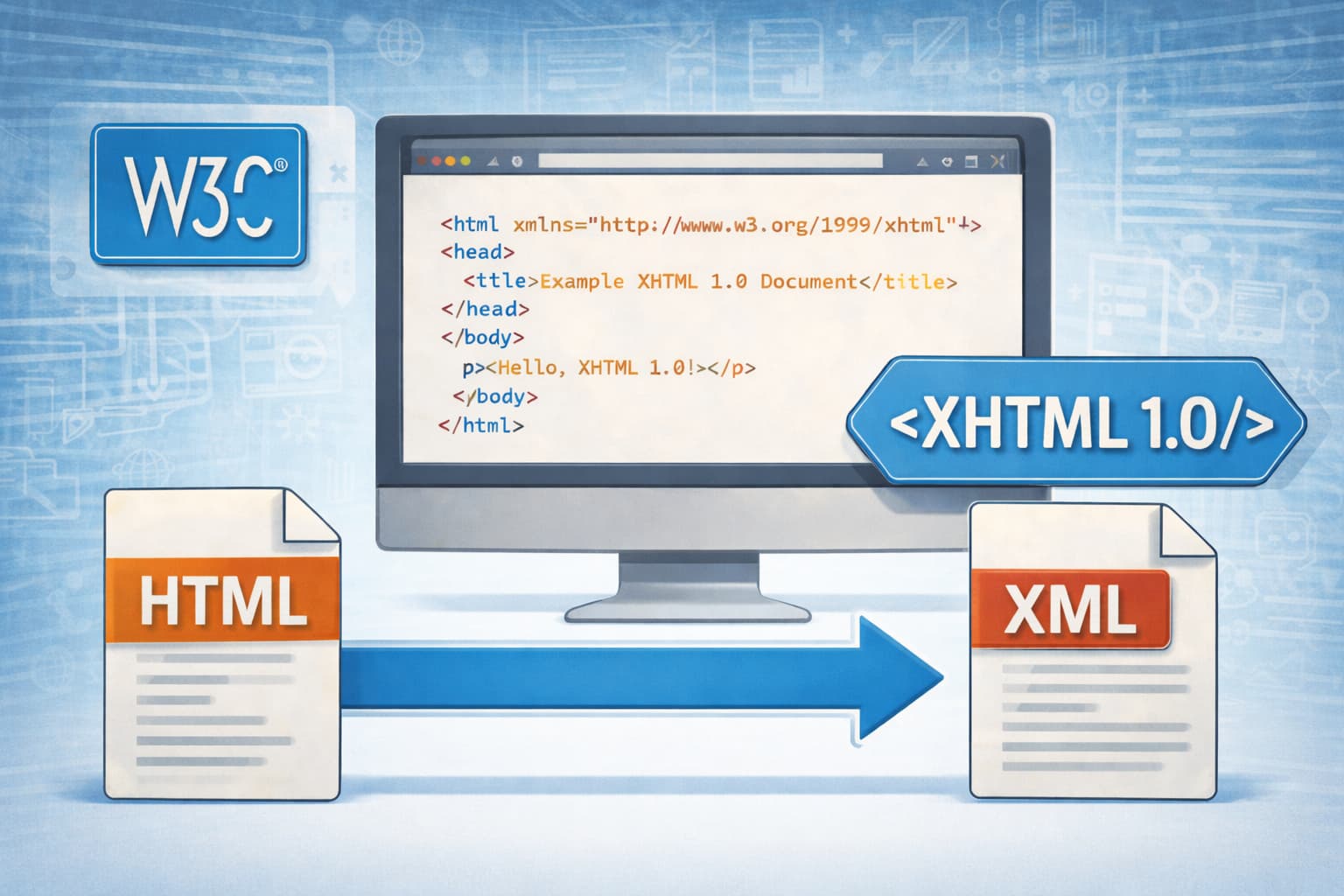XHTML 1.0は、従来広く利用されてきた HTML 4.01 を基礎としつつ、厳格な文法規則を持つXMLに準拠させた点が最大の特徴である。これにより、タグの省略や記述の曖昧さが許されなくなり、文書構造の明確化と機械処理の容易さが大きく向上するとされる。