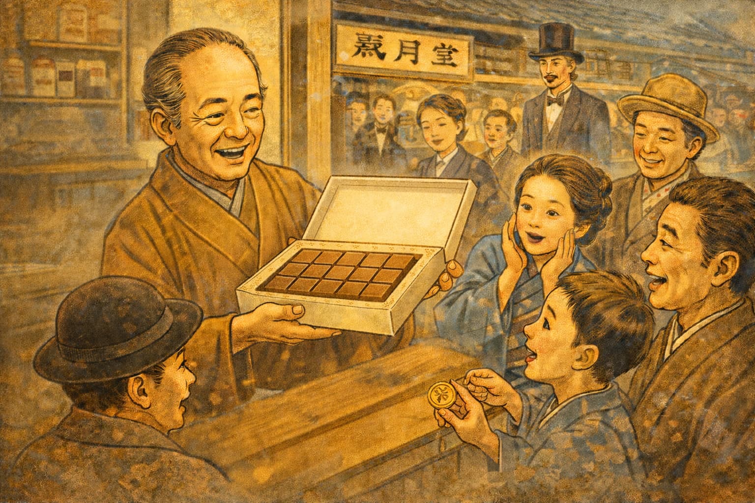 東京・両国に店を構える菓子舗 米津風月堂 はこの日、西洋菓子の一種であるチョコレートを日本で初めて商品として発売した。商品名は「貯古齢糖(ちょこれいとう)」と名付けられ、当時まだ一般に馴染みの薄かった舶来の甘味を、和菓子屋の手で工夫し世に送り出した点が注目されている。