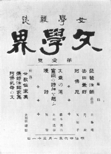 本日、文芸の新潮流を志す若き文学者たちによって、文芸雑誌『文学界』が創刊された。中心となったのは評論家の 北村透谷、詩人・小説家の 島崎藤村 らで、既成の文壇に依らない自由な精神の表現を掲げている。