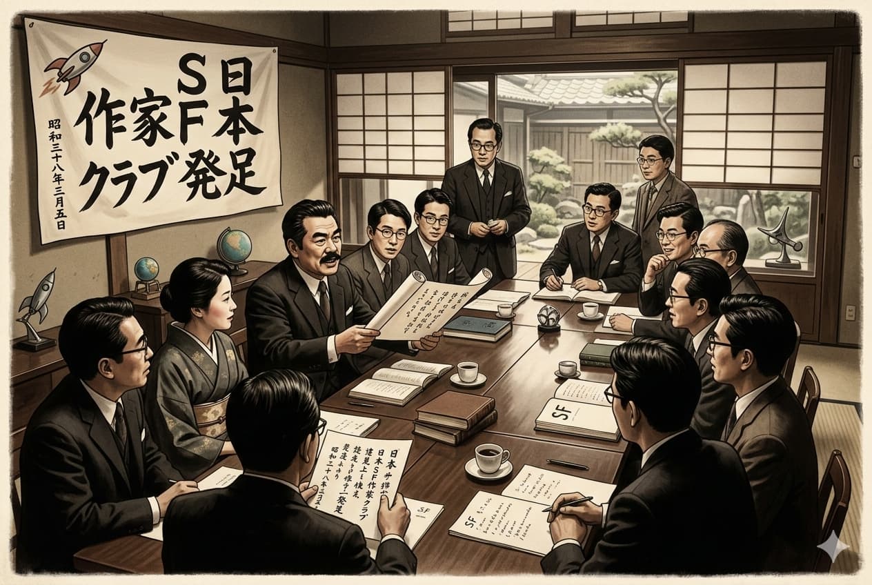 本日夜、東京・新宿の喫茶店「カトレア」において、わが国のSF(サイエンス・フィクション)の普及と作家同士の親睦を目的とした「日本SF作家クラブ(SFWJ)」が産声を上げた。星新一氏、小松左京氏、筒井康隆氏ら、気鋭の作家たちが顔を揃え、未開のジャンルであった「空想科学小説」を日本の文学界に根付かせるための歴史的な一歩を踏み出した。