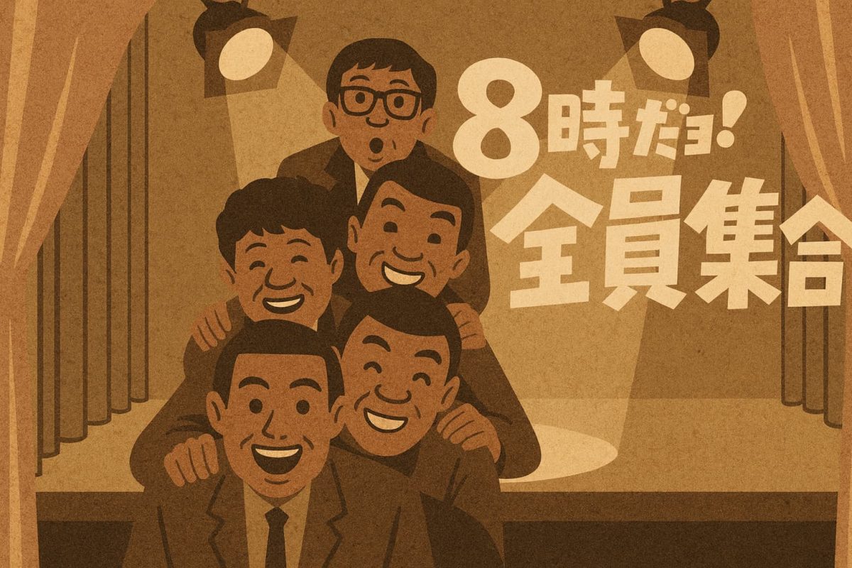 本日午後8時、TBS系列で新バラエティ番組『8時だョ!全員集合』が放送を開始した。人気コントグループザ・ドリフターズを中心に、公開生放送による笑いのエンターテインメントを届ける意欲作だ。