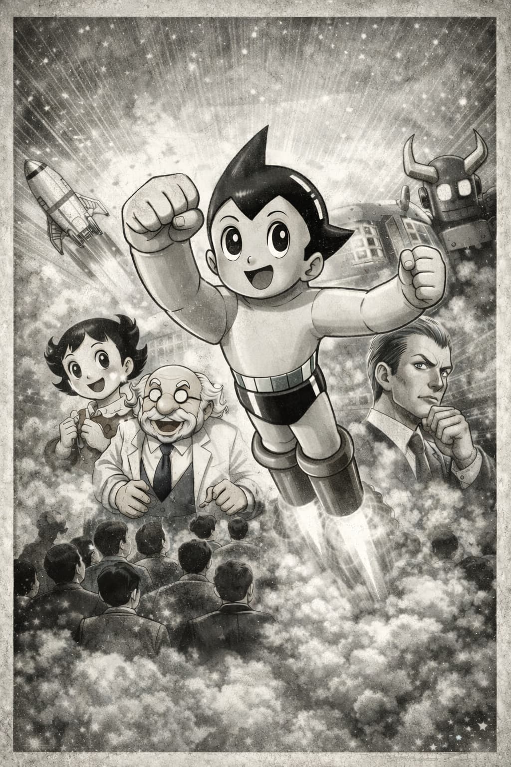 番組は、科学の進歩と倫理を主題に据え、主人公アトムの活躍を通じて希望と葛藤を描いてきた。毎週の放送は家庭の団らんの中心となり、アニメーションが連続ドラマとして成立することを示した点で画期的だった。制作現場では限られた条件の中で工夫が重ねられ、独自の表現技法が培われたという。