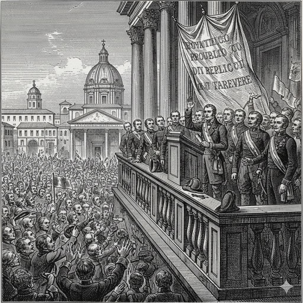 この動きは、昨年来イタリア各地で高まる自由主義と民族自決の気運を背景とするもので、ローマでも改革派知識人や市民層が中心となって政治改革を求めてきた。先に教皇が市外へ退去したことで権力の空白が生じ、議会はこれを機に共和国の樹立を決議した。