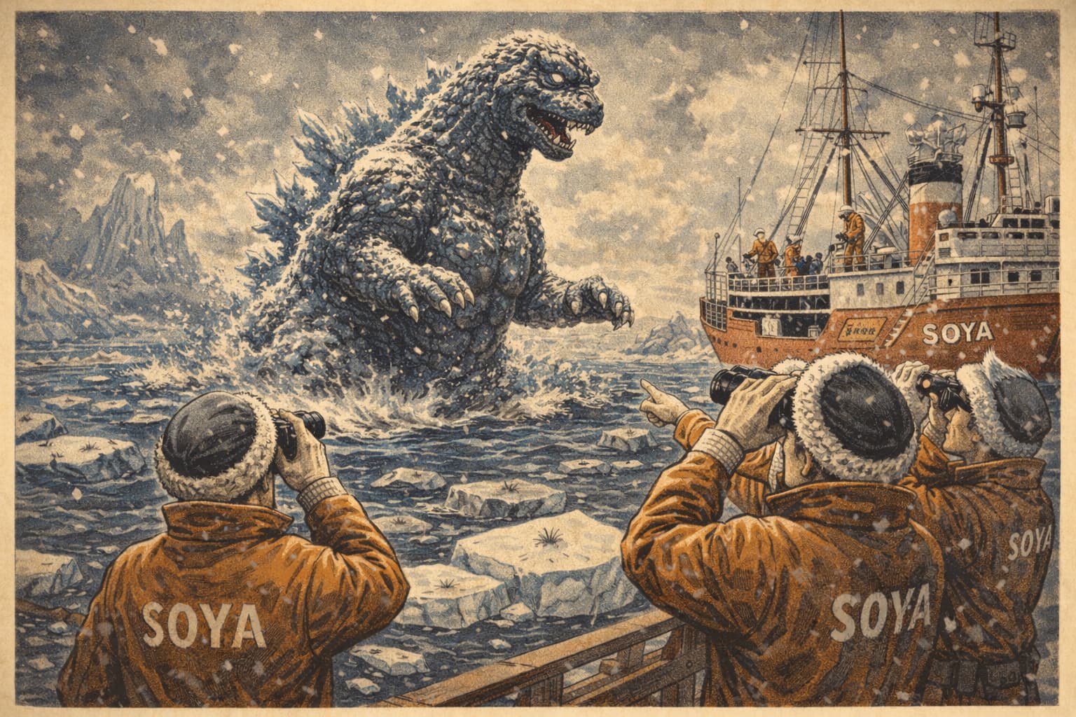 乗組員の証言によれば、体長は数十メートルに及ぶように見え、背部には突起状の影が連なっていたとされる。船内では一部で冗談交じりに「南極ゴジラ」と呼ばれているが、観測隊は現時点で生物の正体は不明であり、確認には至っていないと強調している。