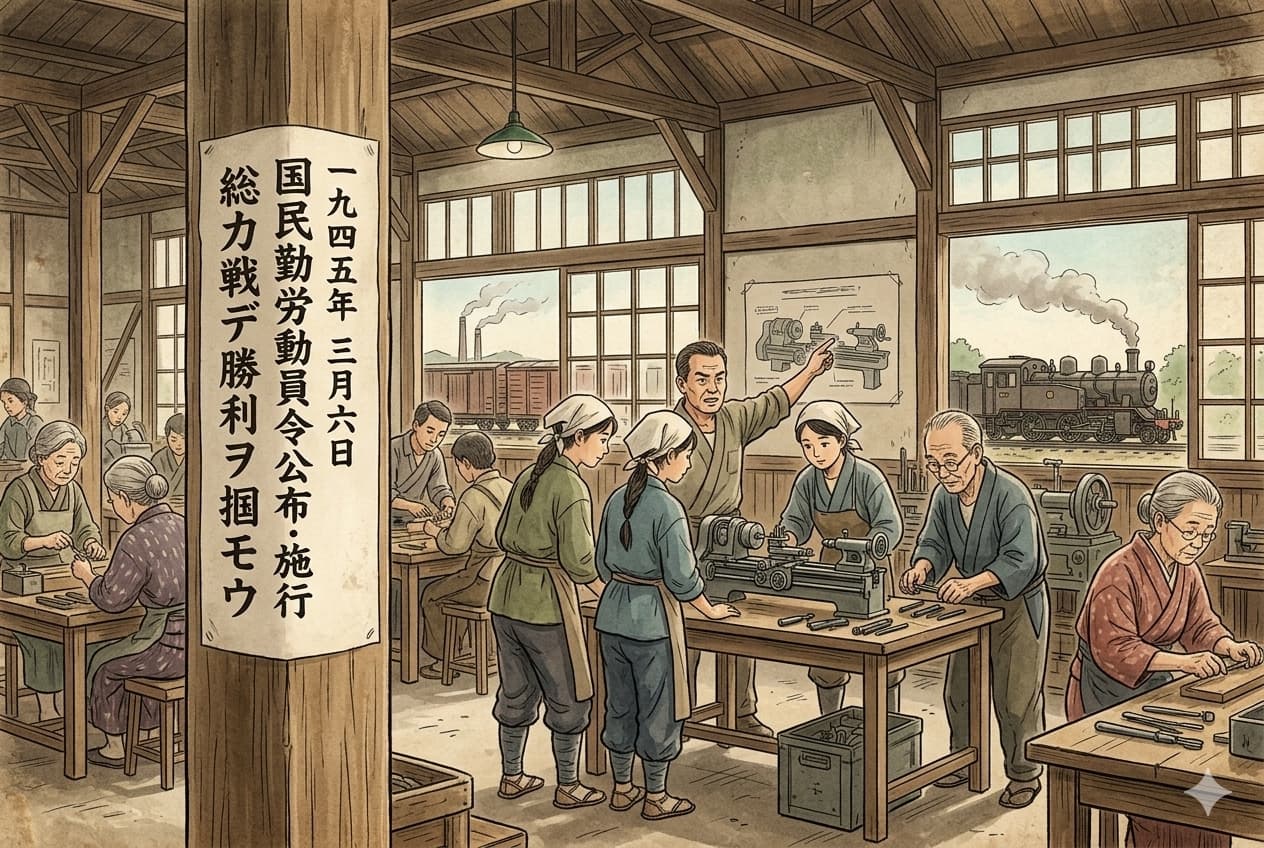 すでに各地の工場では、学徒動員によって授業を打ち切られた少年少女たちが、空襲の恐怖に晒されながらも航空機部品の製造などに従事している。本日の法令施行により、これらの活動はさらに組織化され、国民生活のすべてが戦争遂行という単一の目的に直結されることとなった。
