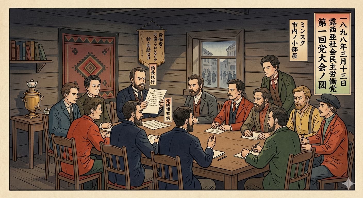本日、ベラルーシの古都ミンスクにおいて、ロシア帝国内のマルクス主義組織を統合する初の政治組織「ロシア社会民主労働党」の創設大会が執筆された。皇帝専制が続くロシア帝国において、労働階級の解放を掲げる統一政党が地下組織として産声を上げたことは、帝国の政治秩序に対する重大な挑戦となる。