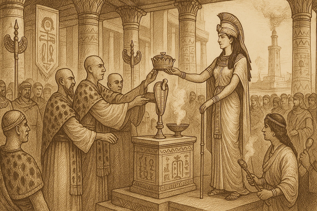 カエサリオンは、共和政ローマの実力者であったガイウス・ユリウス・カエサルとの間に生まれたとされる王子で、クレオパトラは彼を「偉大なるカエサルの正統なる後継者」と称えた。宣言に際し女王は、「エジプトの未来を守るため、血統と正統性を示す必要がある」と強調。式典では大司祭や王族らが列席し、アレクサンドリア市民に向け盛大な祝賀行進も行われた。