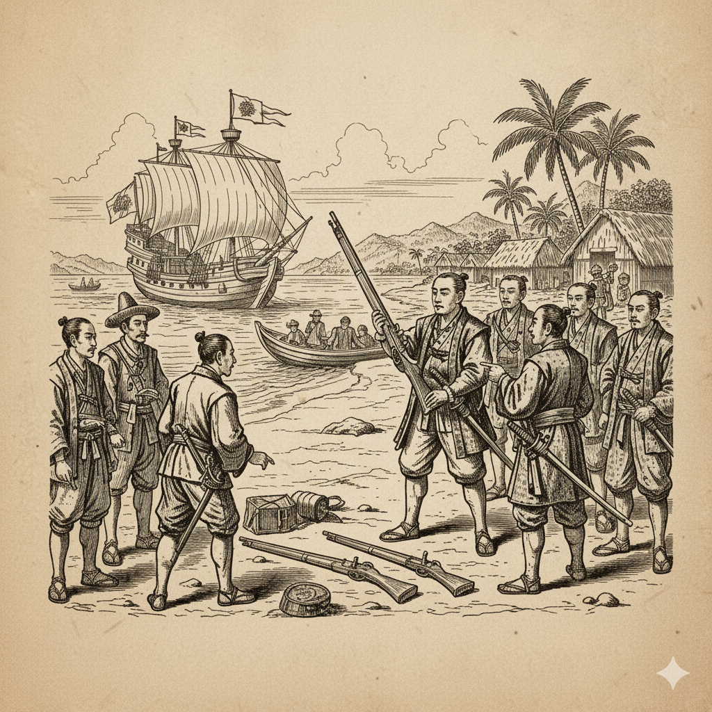 島民の関心を集めたのは、彼らが所持していた「火薬の力で鉄丸を発射する筒状の道具」――いわゆる“火縄銃”であった。試射を行ったところ、激しい音と共に的を貫通するその威力に、武士たちは「弓矢に代わる戦の道具」と驚嘆したという。