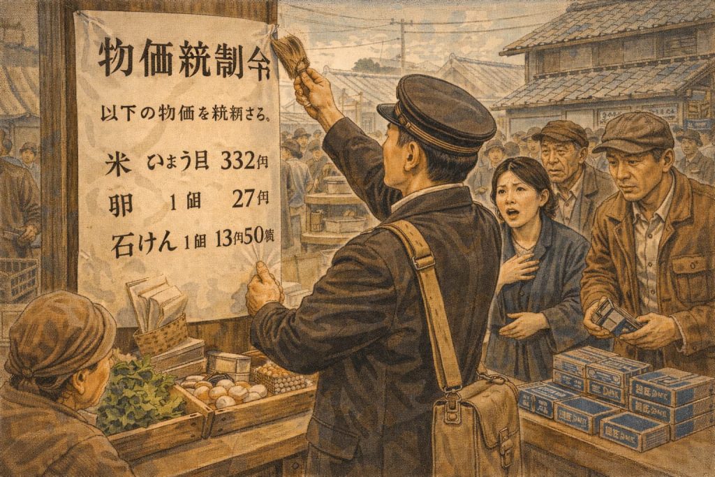 【東京 3月3日】 政府は本日、戦後の深刻な物資不足と猛烈なインフレを抑制するため、強力な法的強制力を伴う物価統制令(ポツダム宣言の受諾に伴い発する命令に関する... -