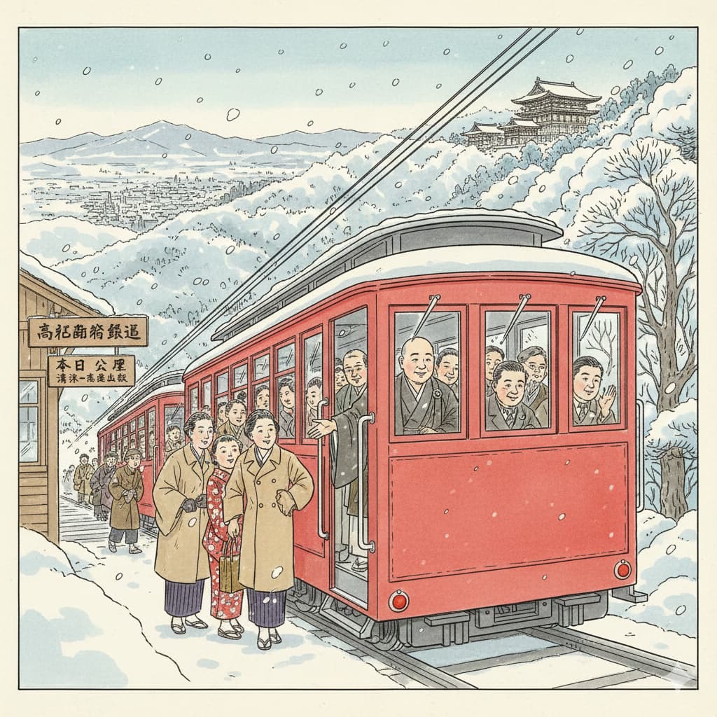 【東京府八王子町 1月21日】 多摩の霊峰・高尾山への参詣を容易にする新たな交通手段として、本日、清滝―高尾山間に高尾登山鉄道のケーブルカーが開業した。これにより... -