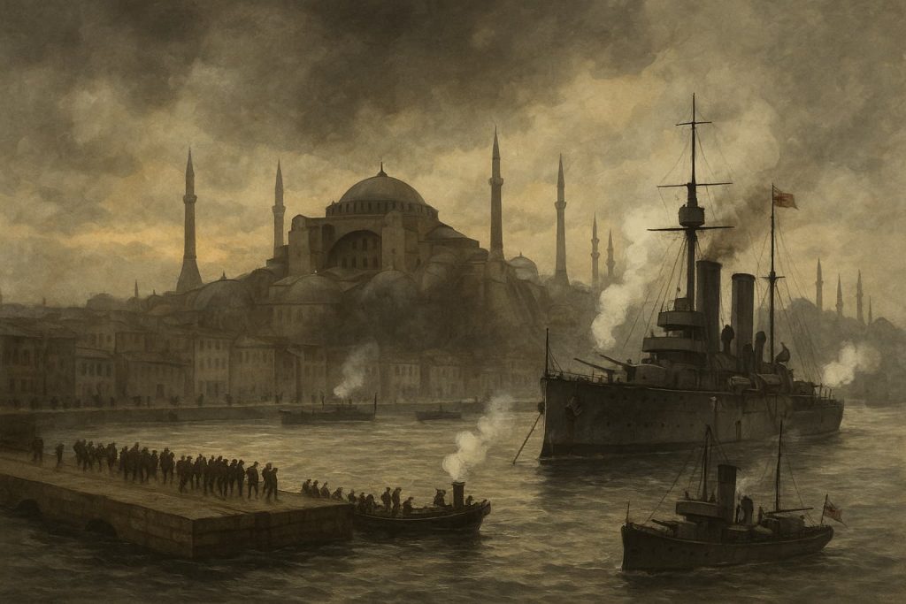 【コンスタンティノープル 11月13日】 本日、第一次世界大戦の停戦協定を受け、連合国軍がオスマン帝国の首都コンスタンティノープルに上陸・占領を開始した。市内には...