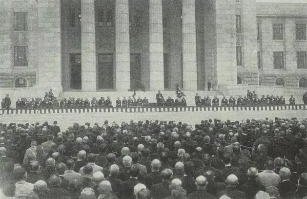 【東京 11月7日】 建設に17年の歳月を要した国会議事堂が本日、ついに落成を迎えた。午前、永田町の新議事堂前では関係者が集い、盛大な落成式が執り行われた。赤茶色の... -