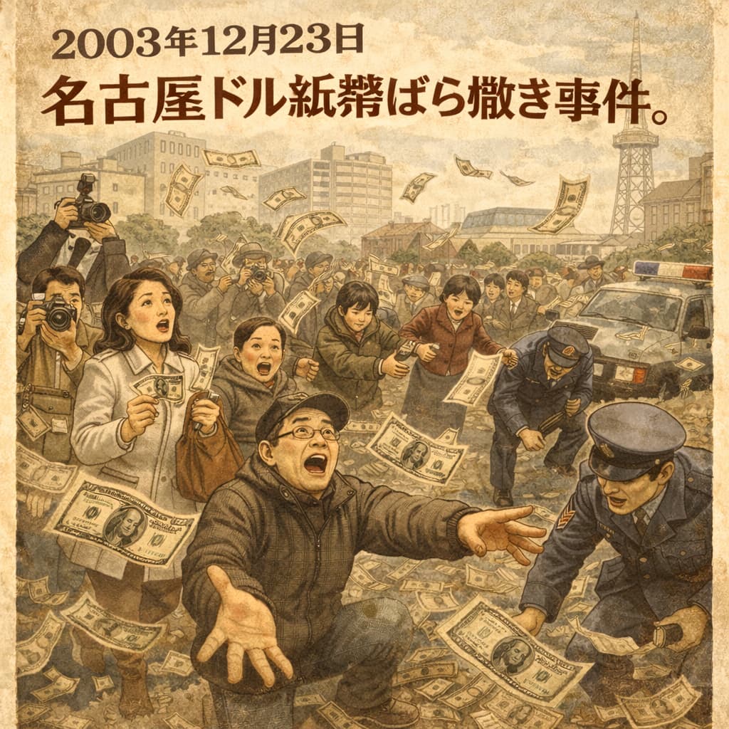 【名古屋 12月23日】 本日午後、名古屋市中心部において、米ドル紙幣が大量にばら撒かれる事件が発生し、現場周辺は一時騒然となった。歩道や車道に散乱した紙幣を拾お... -